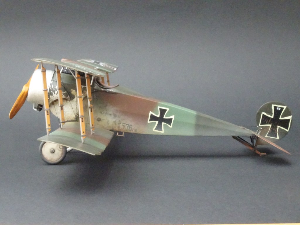 There are a lot of good 1/32 kits out there, and with the demise of Wingnut Wings there are a number of manufacturers who no doubt will be eager to fill the gap. This Fokker D.II has been around a while and although a bit less refined, builds into an interesting model. The stripping of paint due to castor oil being flung from the engine was fun to replicate, but less pleasing was the need to produce my own masks for the wing markings due to some terrible decals which fractured as soon as they hit the surface.